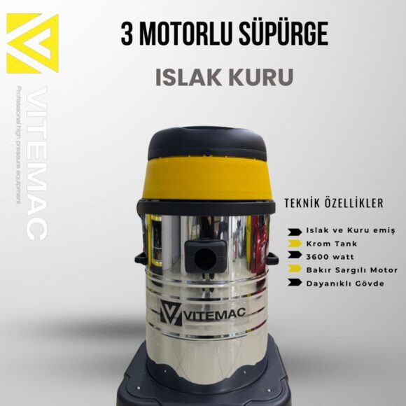Wd 603 3 motorlu sanayi tipi ıslak- Kuru süpürge star 603 wdm profesyonel elektrik süpürgesi, profesyonel temizlik şirketleri tarafından sıkça tercih edilen bir temizlik makinasıdır.; 3 x 1400 w / çift fanlı motor u ile güçlü emiş sağlar, (245 mbar / 24,5 kpa) x 2 vakum gücü ile profesyonellerin tercihidir.; Oto iç yıkamada sıkça tercih edilen metal gövdeli endüstriyel temizlik makinasıdır.; Kullanıldığı alanlar ofis kat temizlik makinası ; Plaza kat temizlik makinası ; Otel temizlik süpürgesi ; Pansiyon elektrik süpürgesi ; Oto yıkama elektrik süpürgesi ;